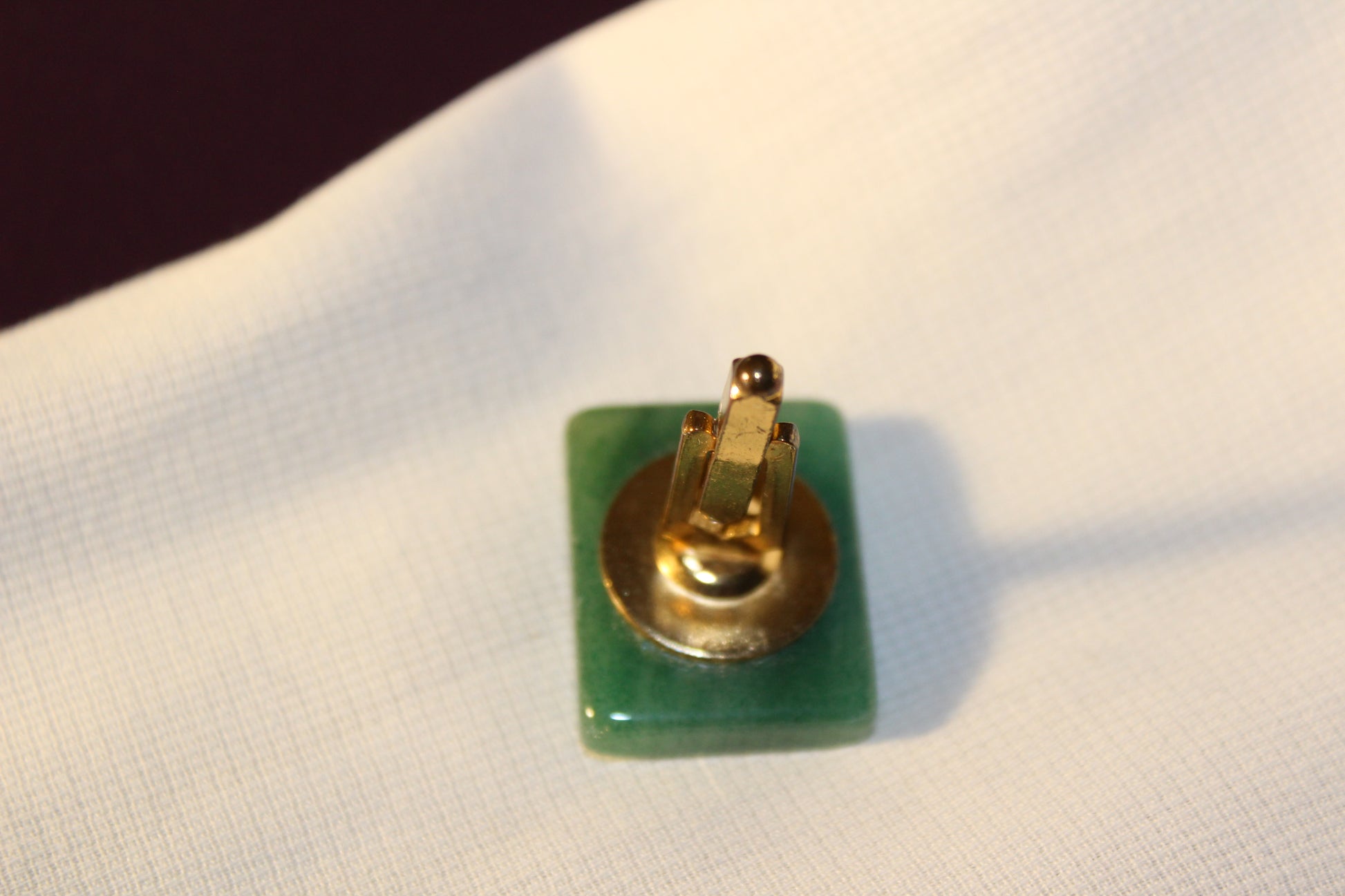 These rectangular stone cufflinks are 14/16" X 10/16". They feature a gold tone toggle for the closure. Shipping is included.